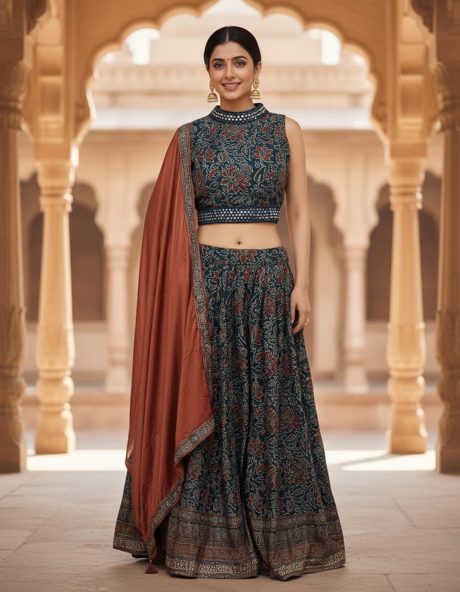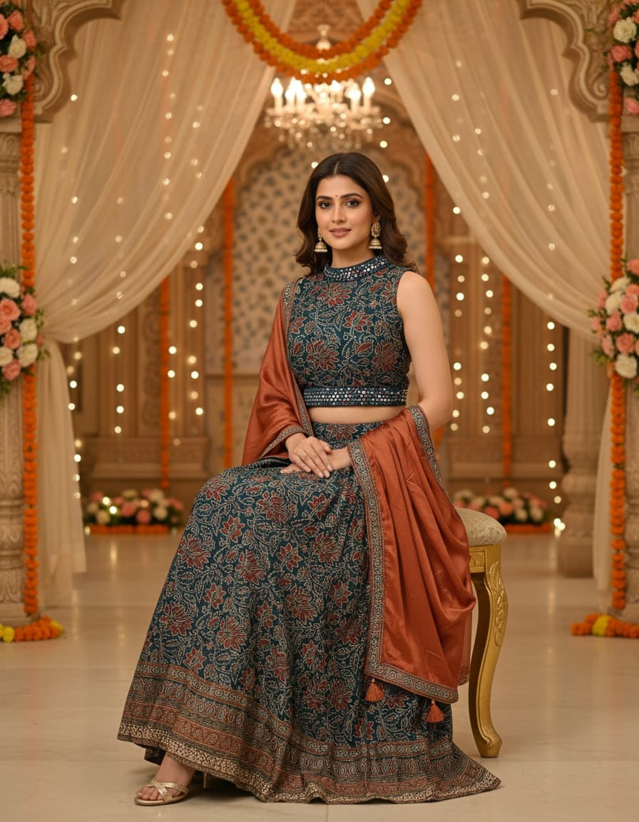 Beautiful Blue Lehenga on Gajji Outfit with Dupatta Fully Partywear Comfortable