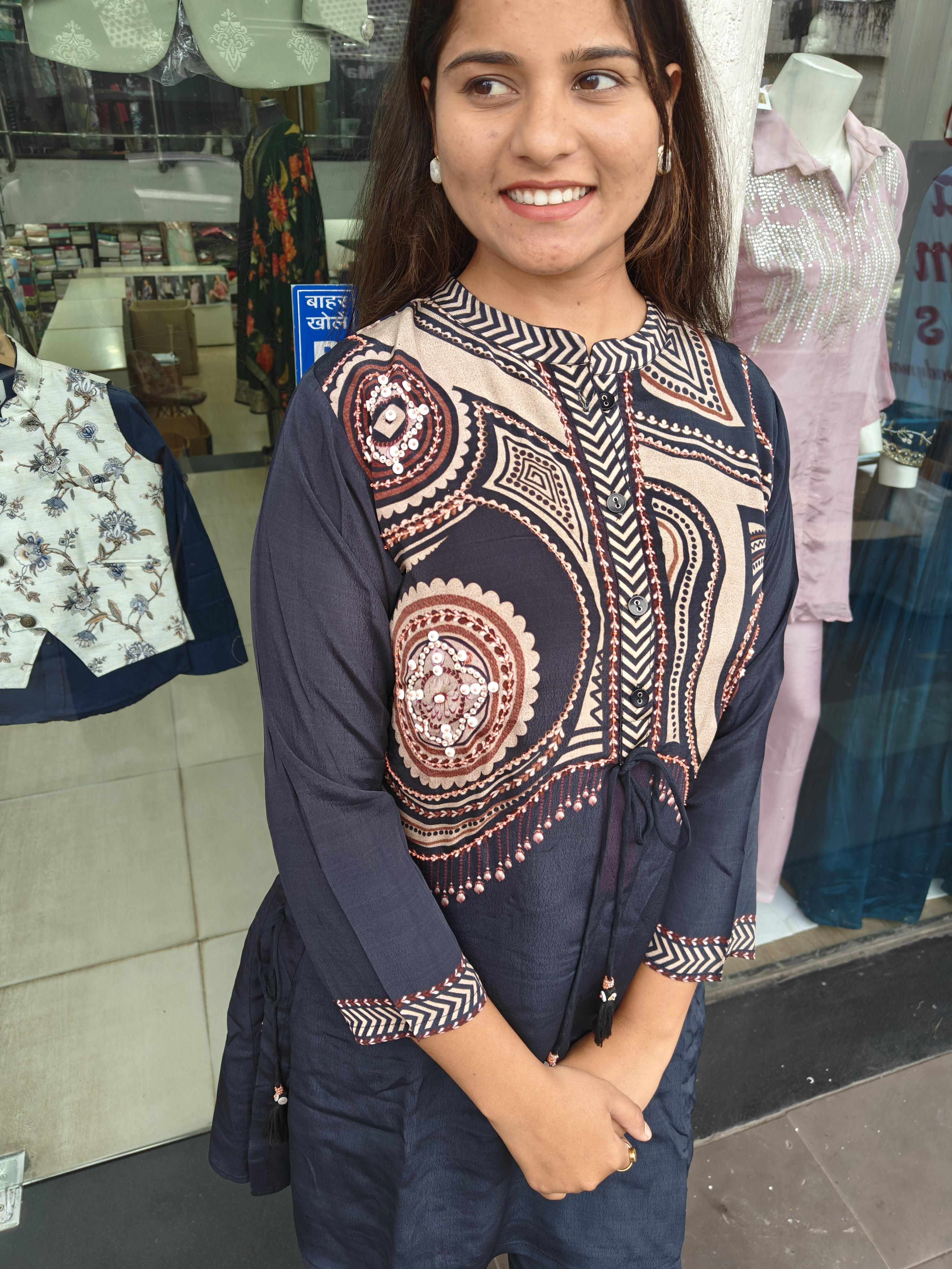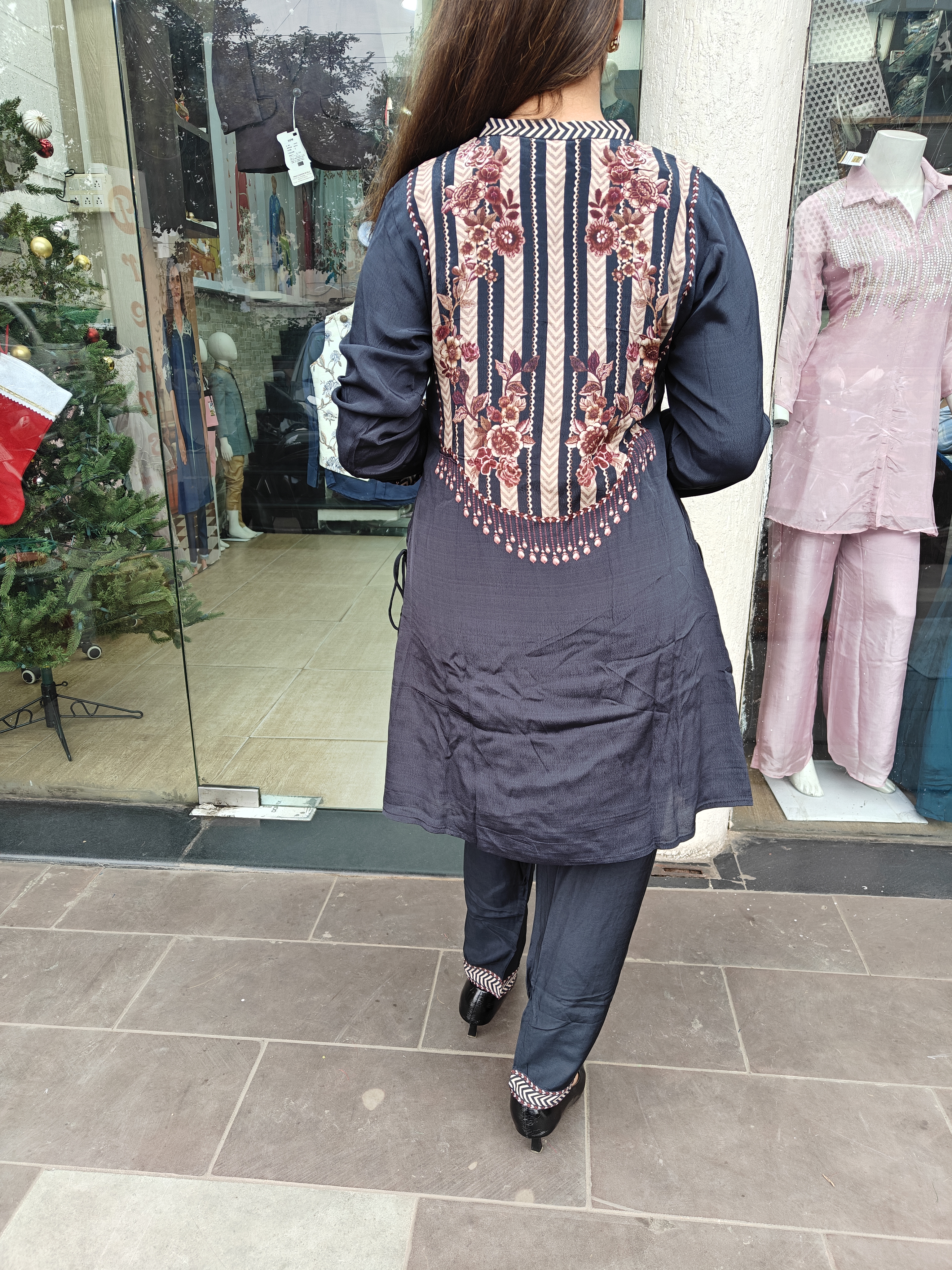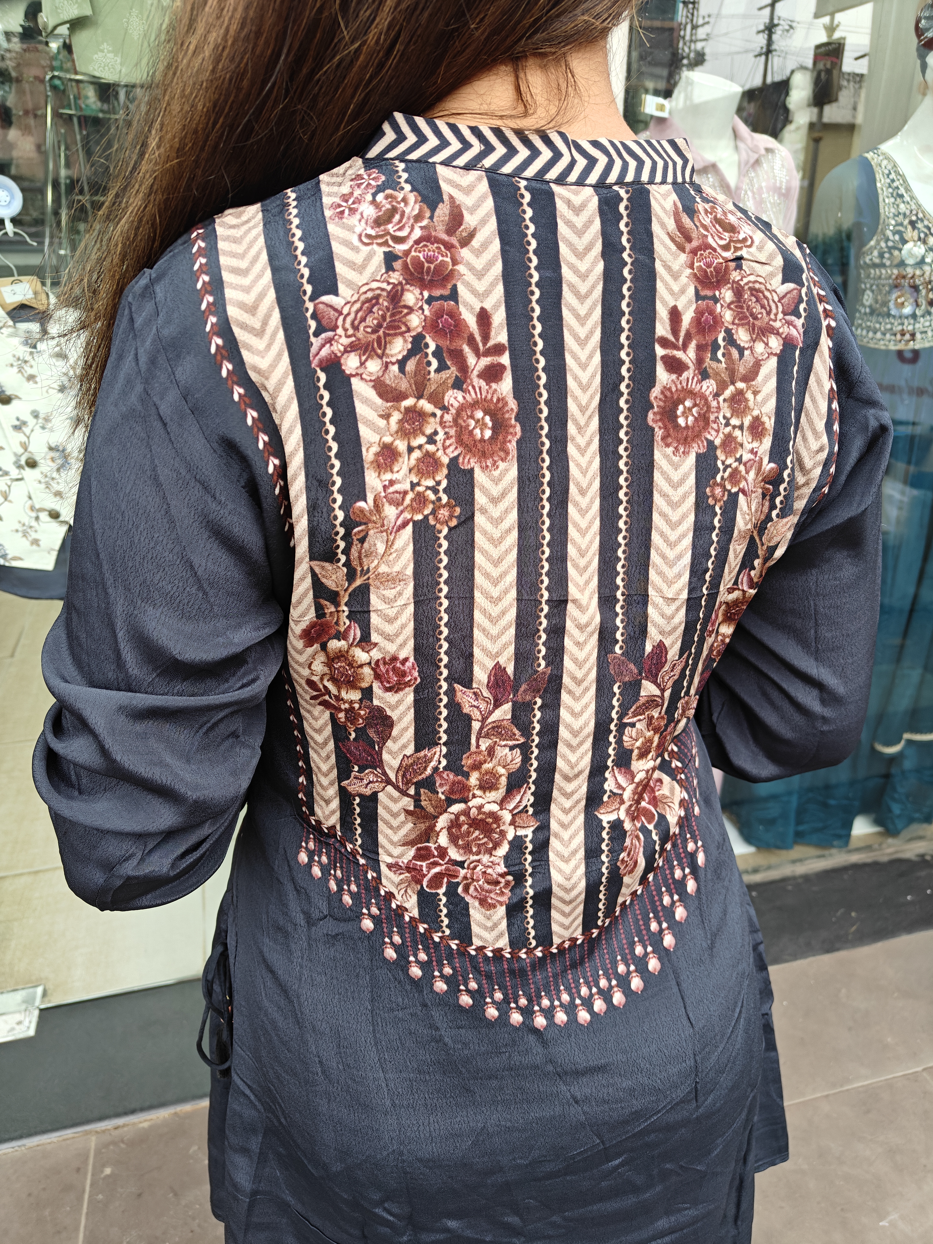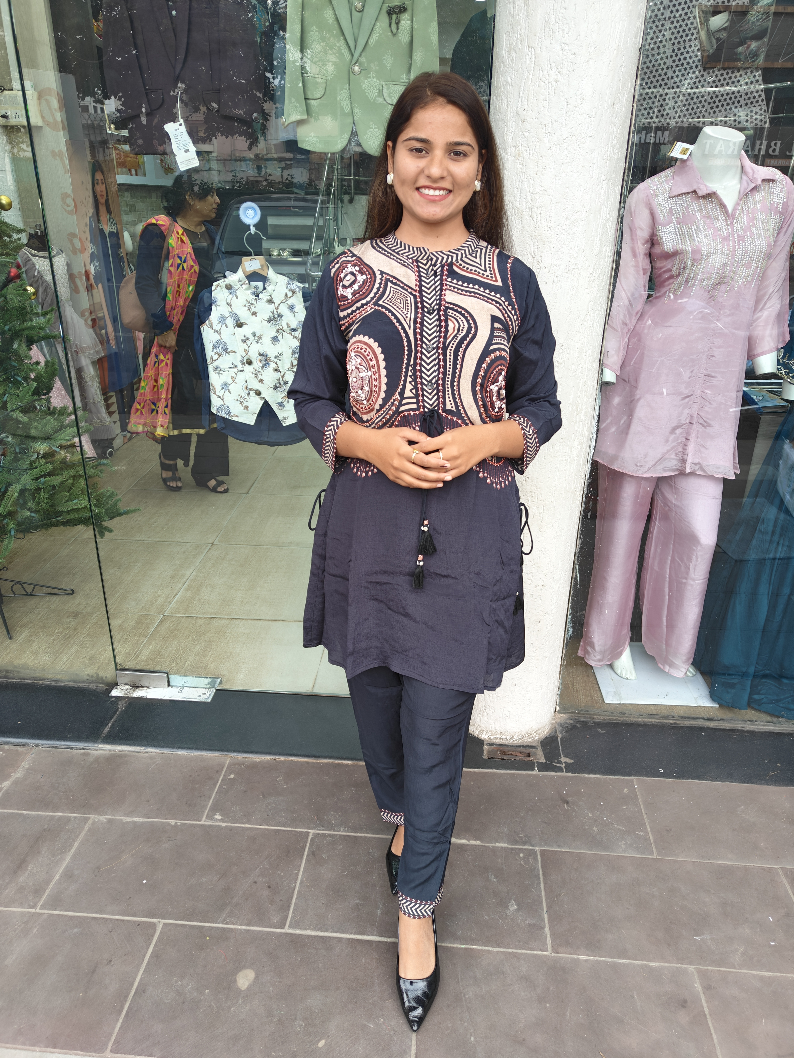 Black Crape Fabric Pant Set With Pearl Linings