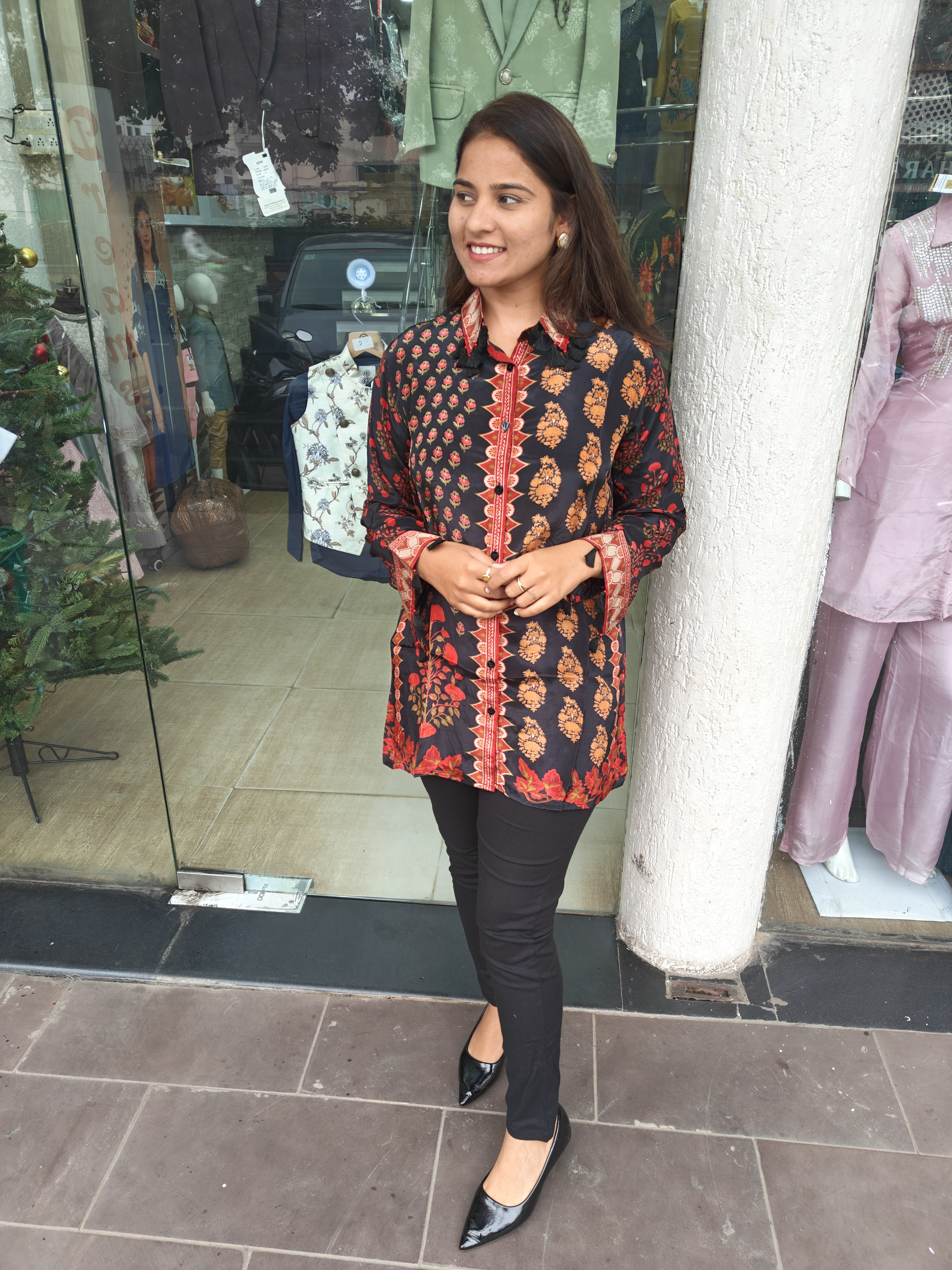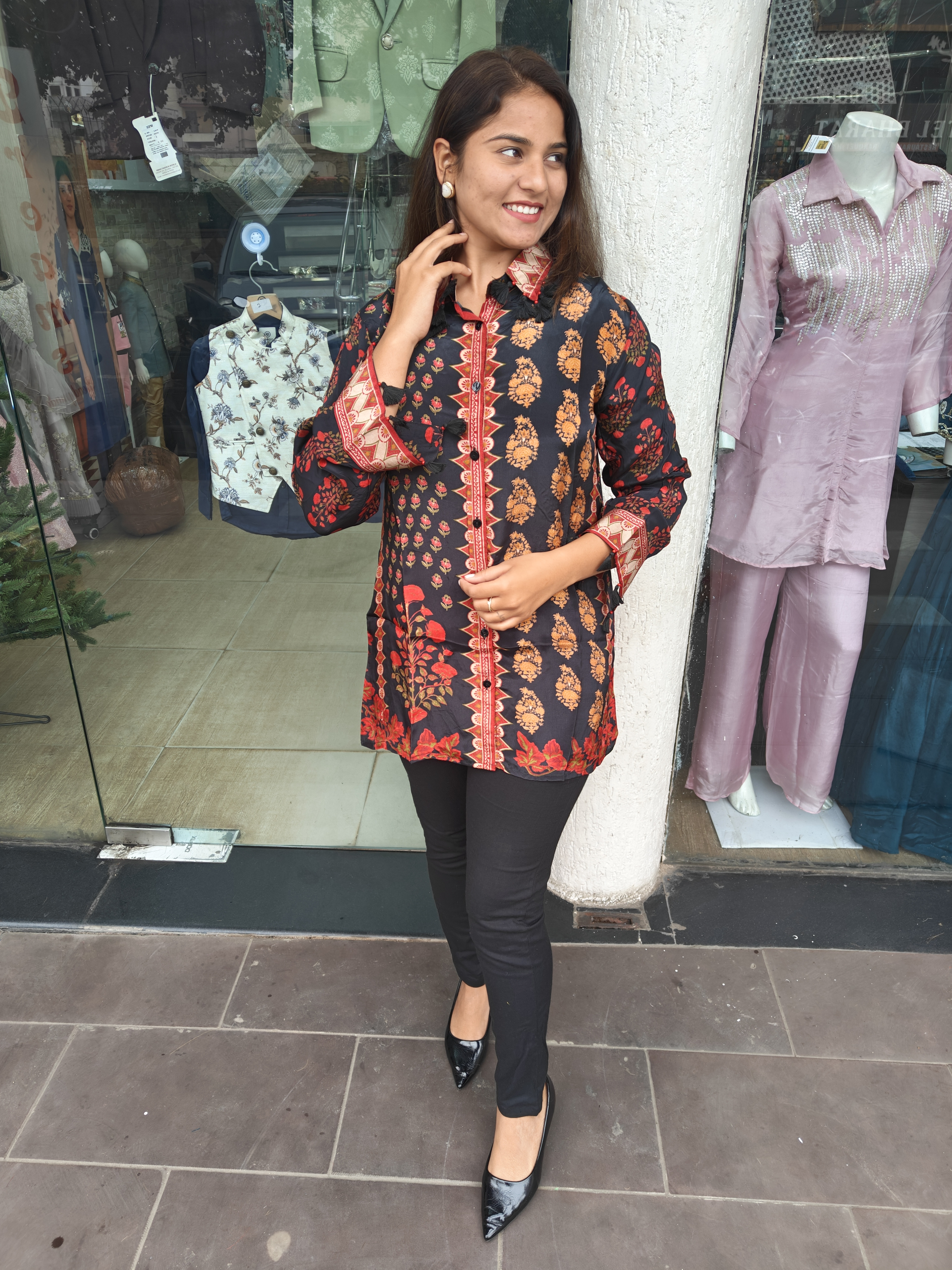 Black Crape top With Collar Pattern