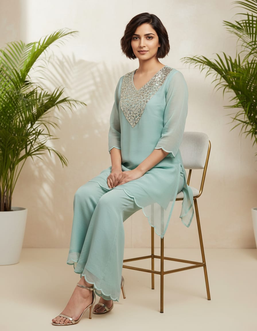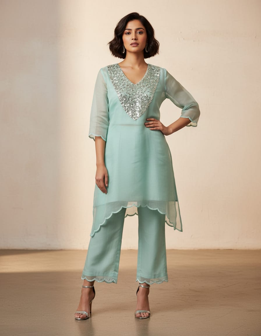 Blue Tissue Material Party Wear Mirror Cord