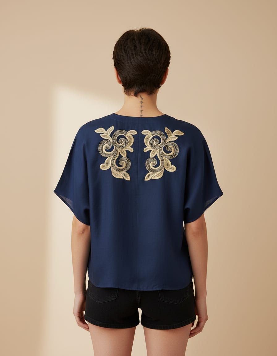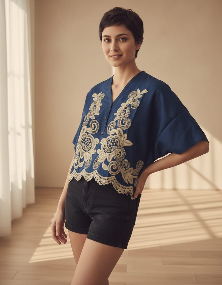 Cotton Blue Crop Top with lacing Designs
