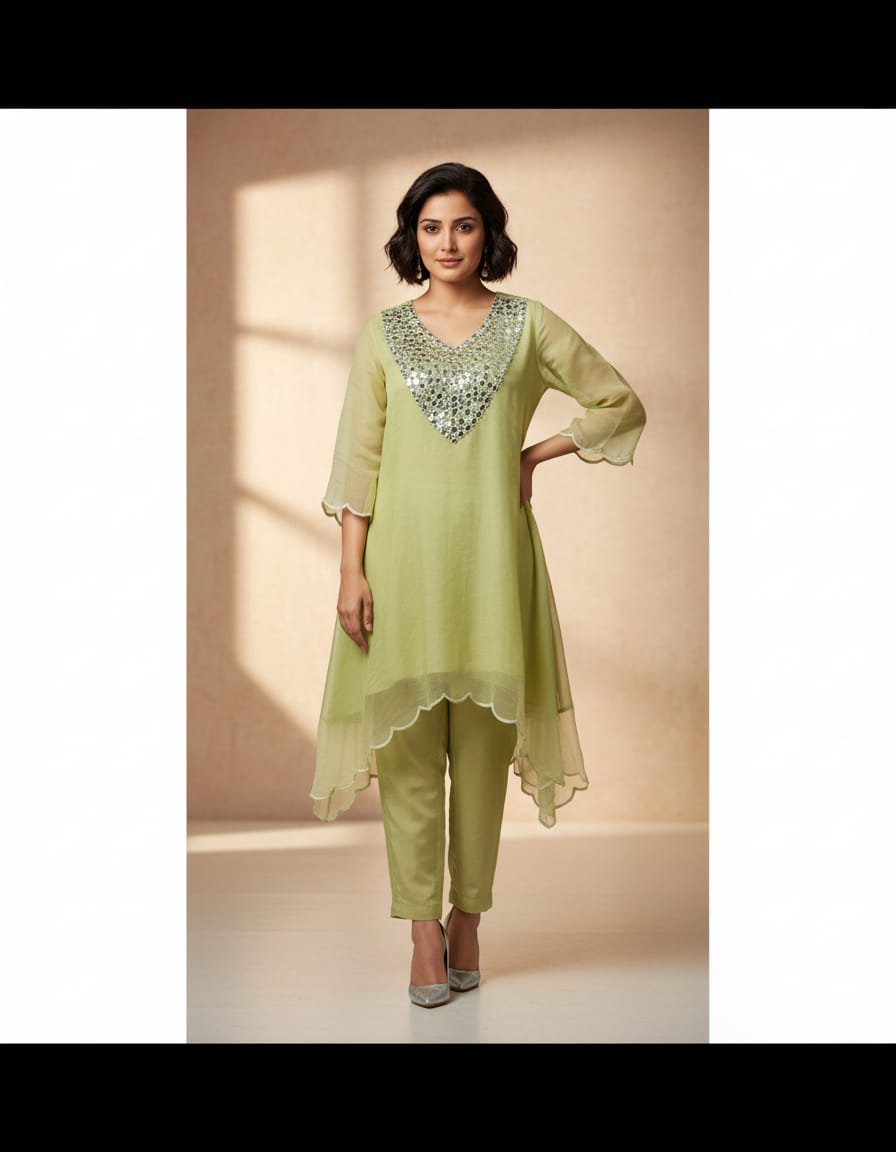 Green Tissue Material Party Wear Mirror Cord