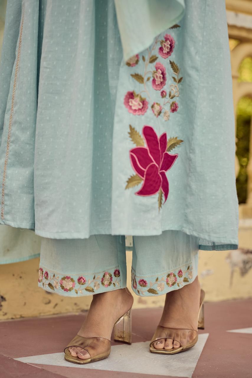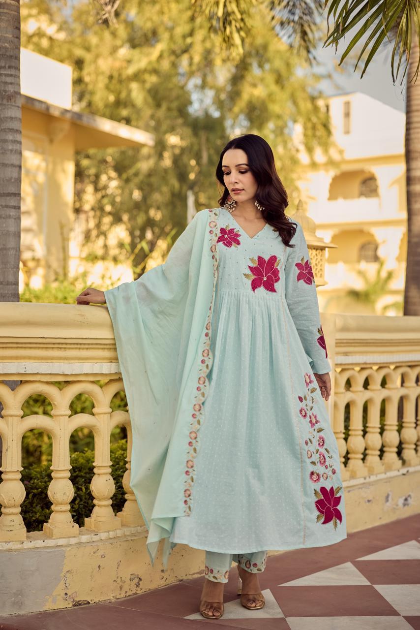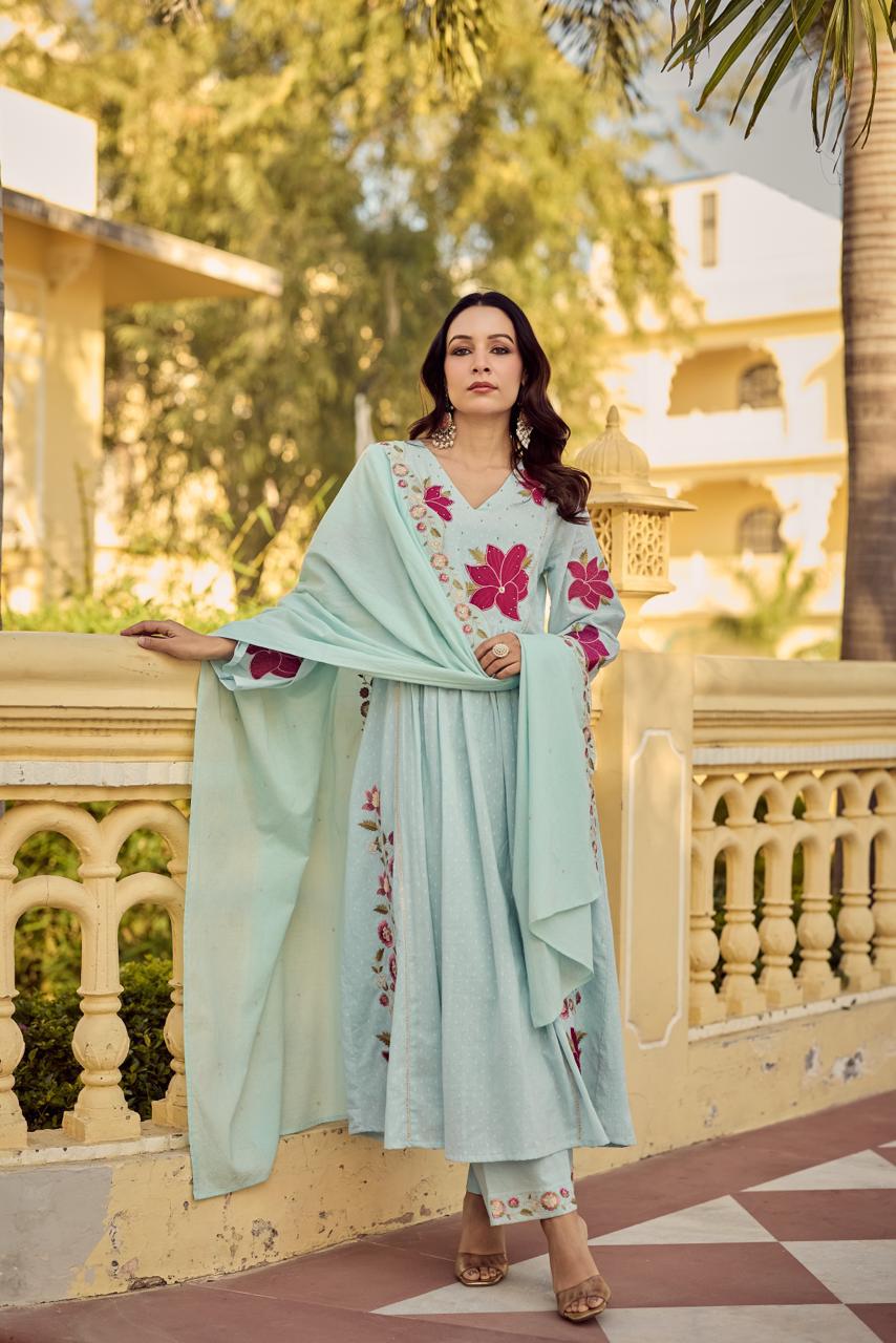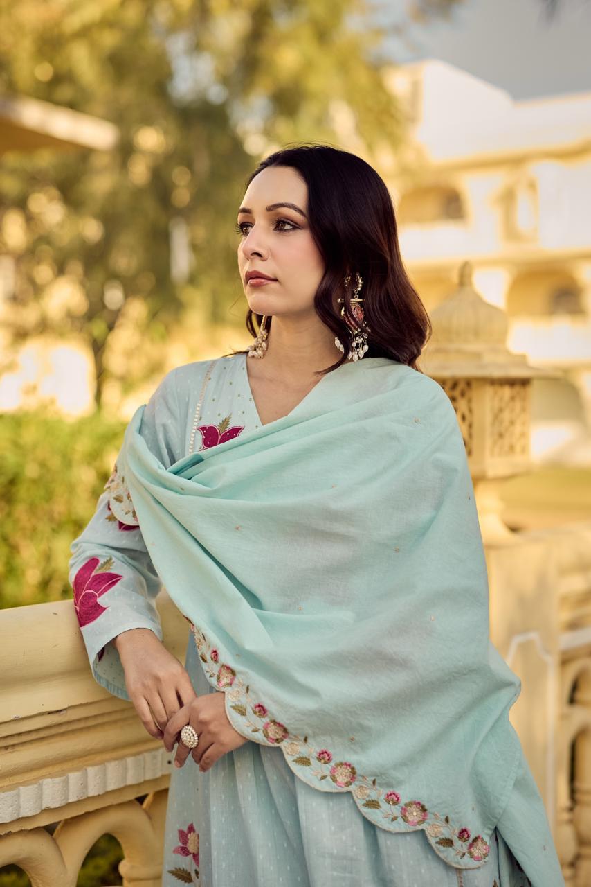 Mal Cotton Blue Shaded Full Suit