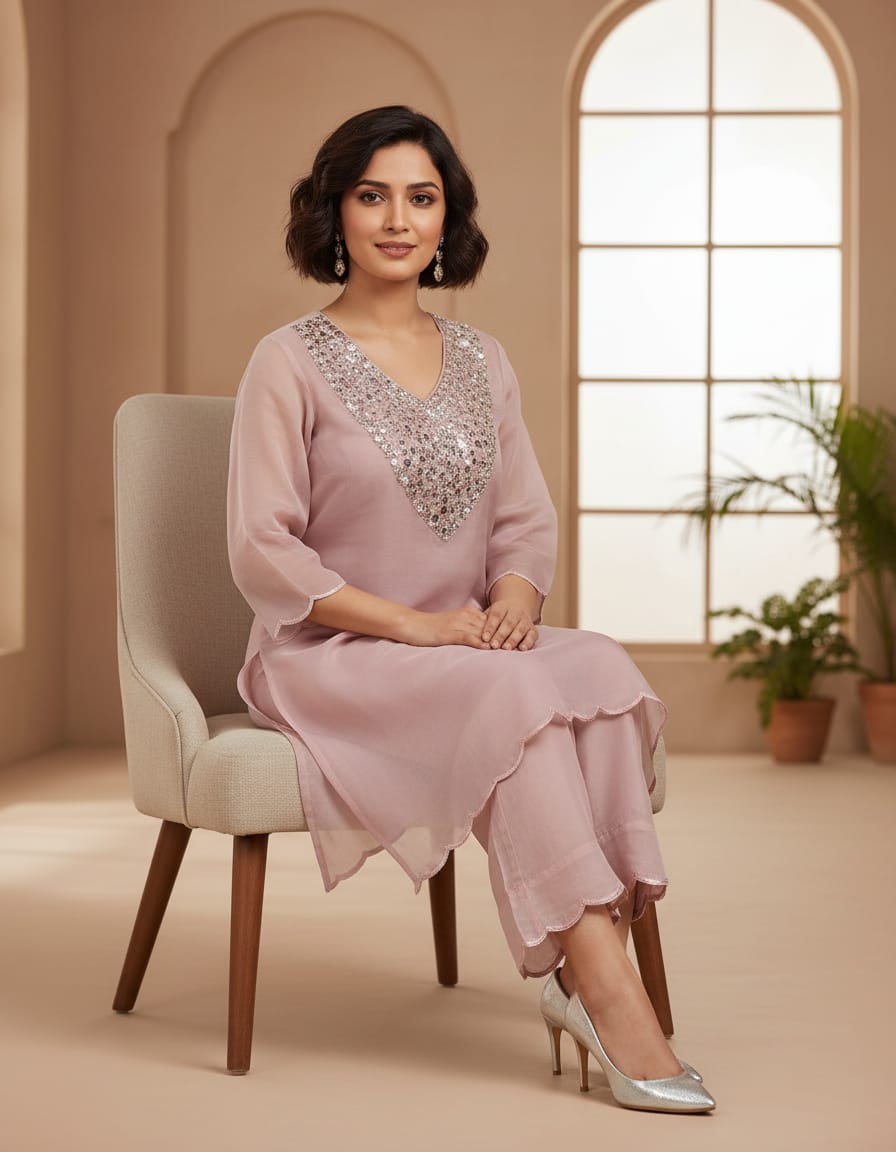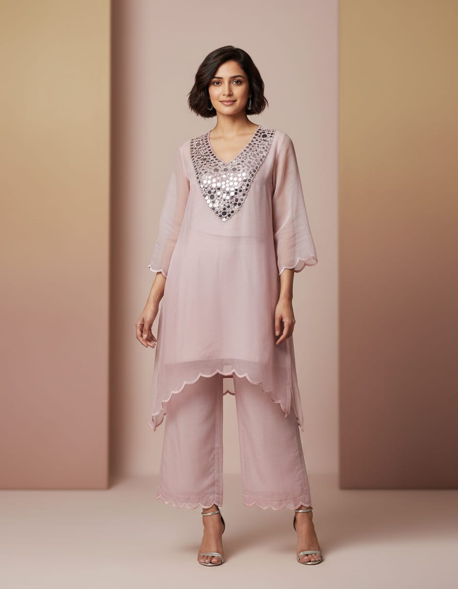Pink Tissue Material Party Wear Mirror Cord